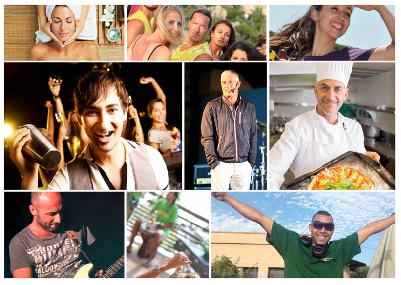 Nel corso della tua vacanza potresti incontrare: Trainers, Musicisti, Cantanti, Attori, Deejay, Chef, Ballerini, Guest Relations, Bartender, Performers